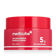 Medicube TXA + Niacinamide 5% Capsule Cream 55 g to innowacyjny krem rozjaśniający z kwasem traneksamowym (TXA) i niacynamidem, który pomaga wyrównać koloryt skóry, zmniejszyć plamy pigmentacyjne i poprawić ogólny wygląd skóry. Ten korygujący krem do twarzy wykorzystuje technologię kapsułek do ukierunkowanego uwalniania składników aktywnych, pozostawiając skórę gładką, nawilżoną i promienną.