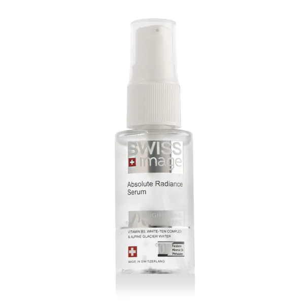 SWISS Image Brightening Care Absolute Radiance Serum 30 ml to lekkie serum rozjaśniające, które pomaga wyrównać koloryt skóry, zmniejszyć jej matowość i promować jej naturalny blask. To nawilżające i rozjaśniające serum zapewnia intensywną pielęgnację skóry, poprawiając jej gładkość i pozostawiając ją odświeżoną i wyraźnie bardziej promienną. Lekka konsystencja szybko się wchłania i przygotowuje skórę do nałożenia kremu.